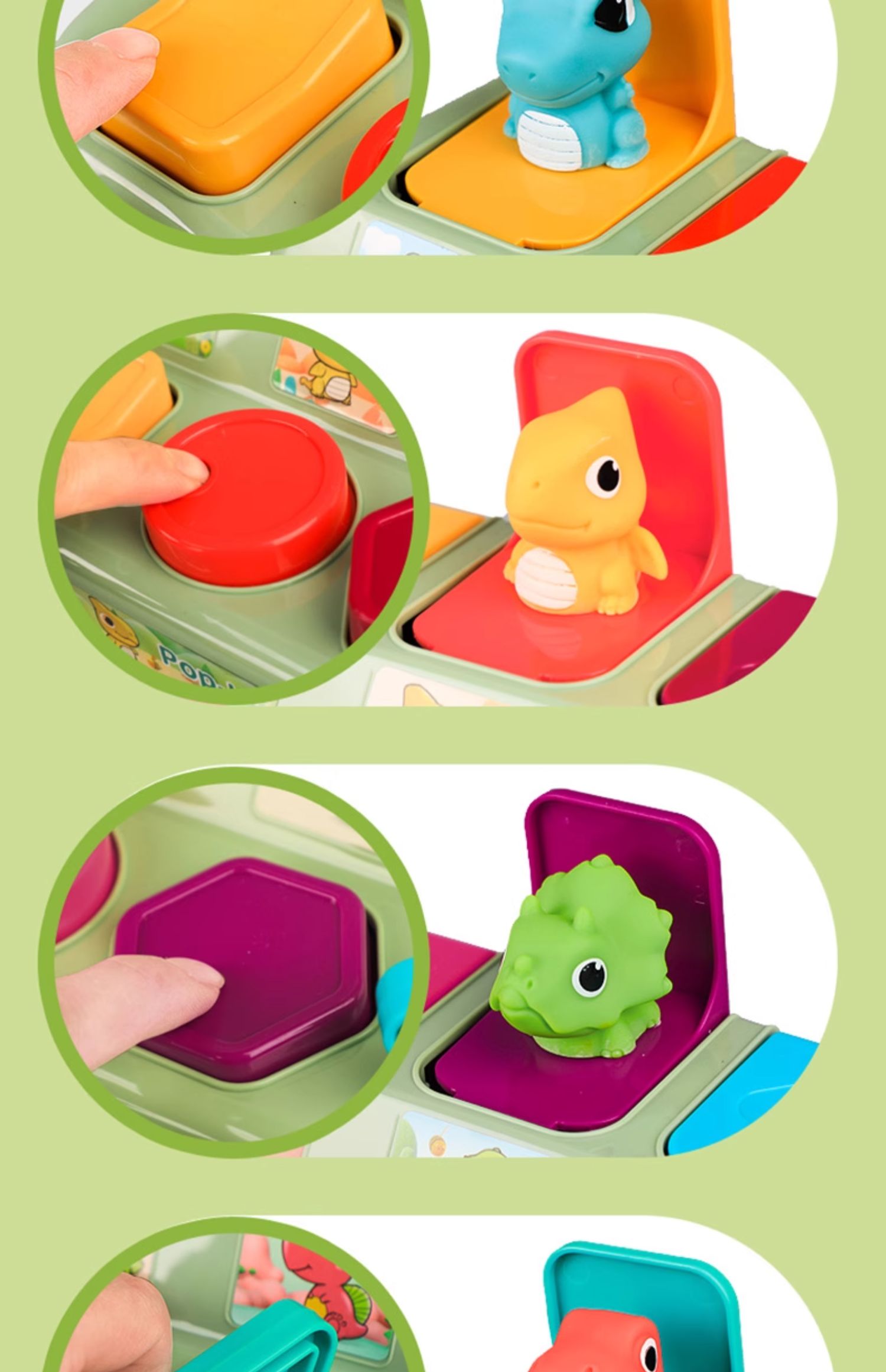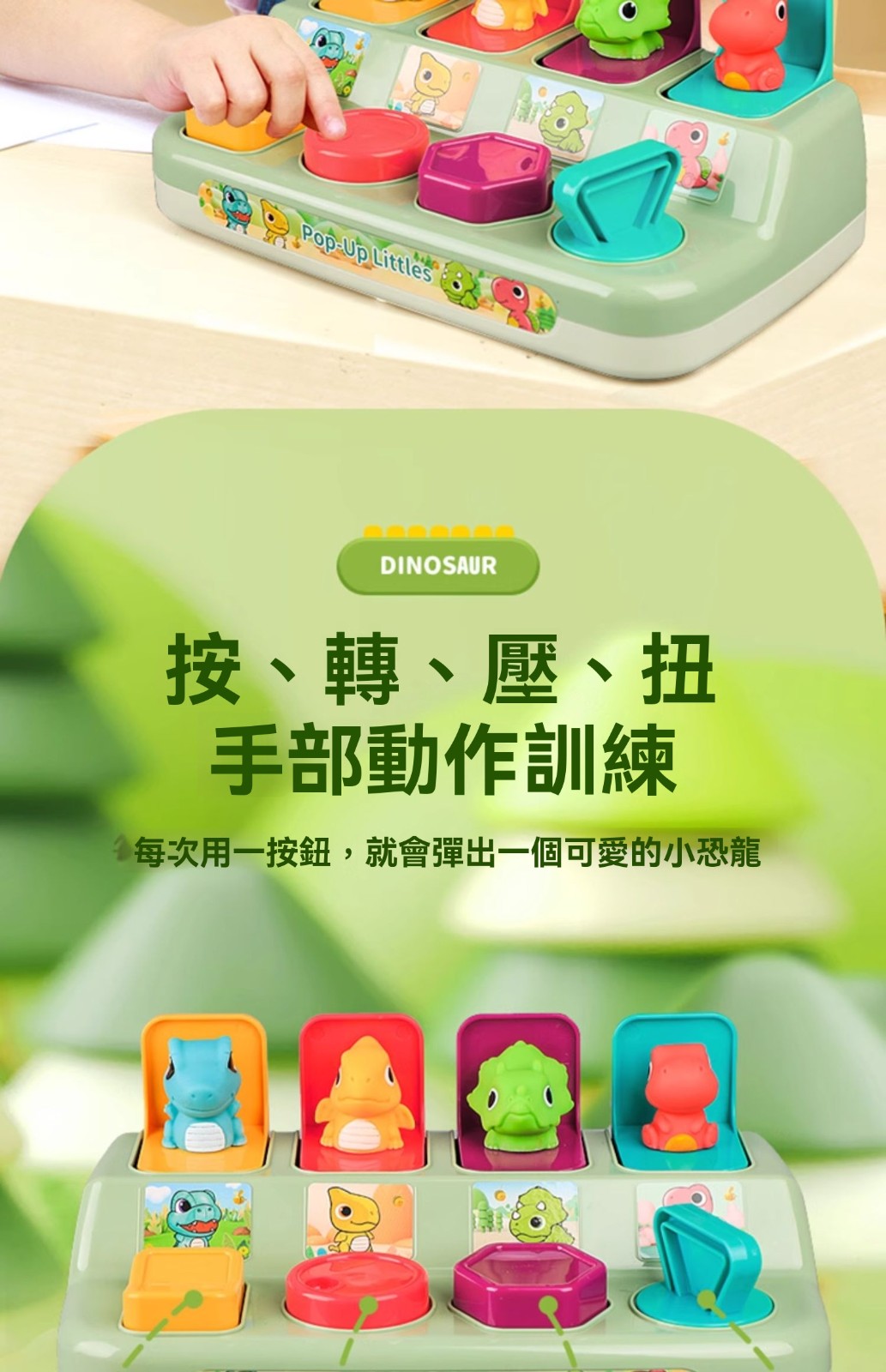 【恐龍驚喜開關盒】按壓彈跳・驚奇躲貓貓・玩出寶寶尖叫的感官盛宴!