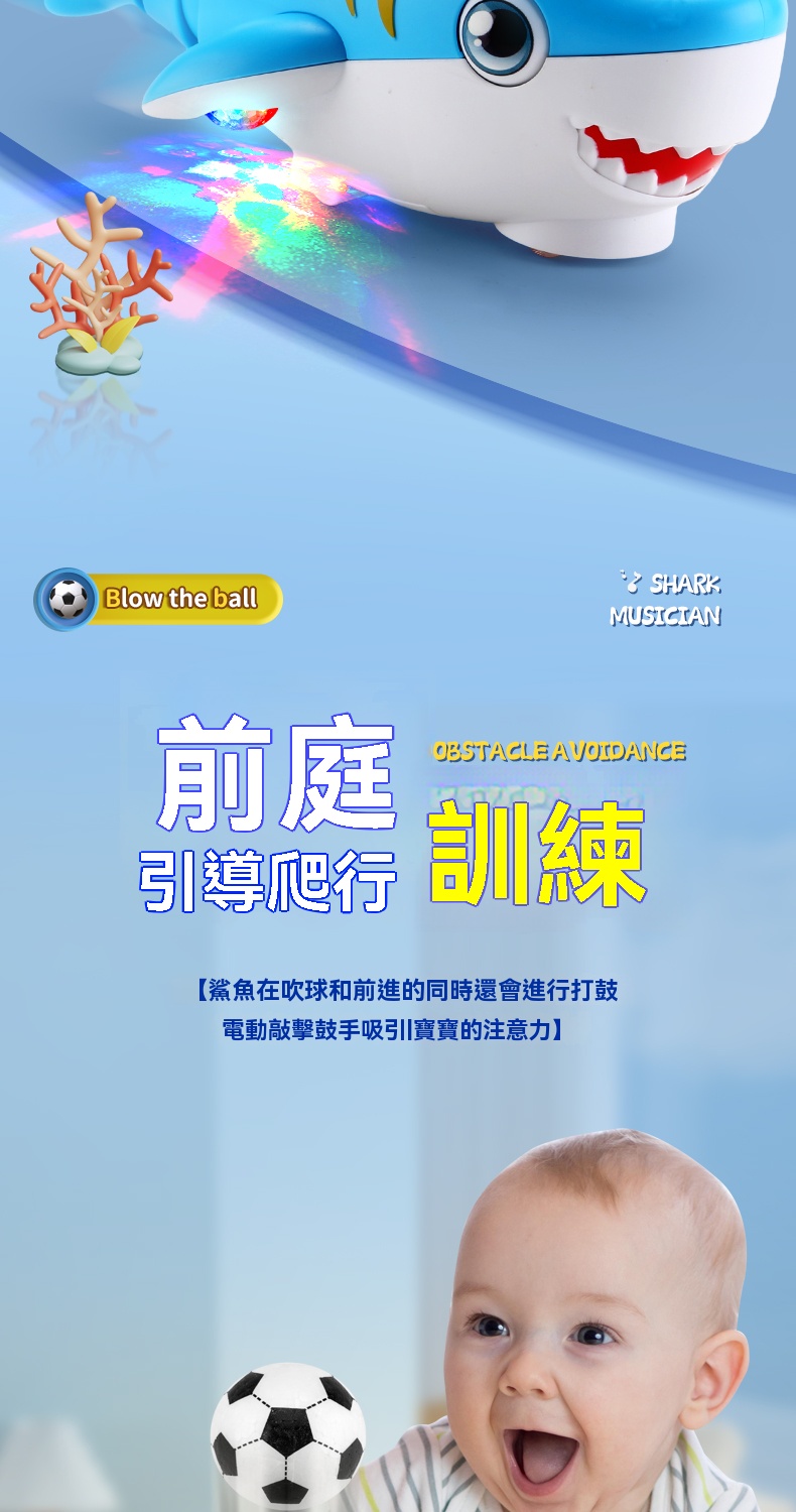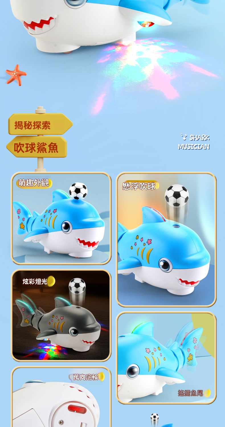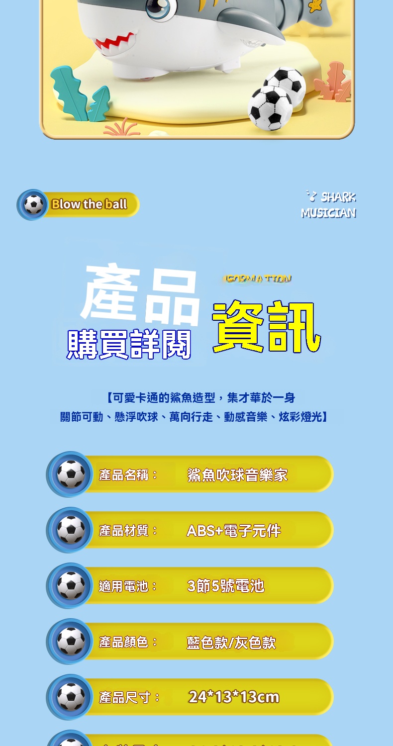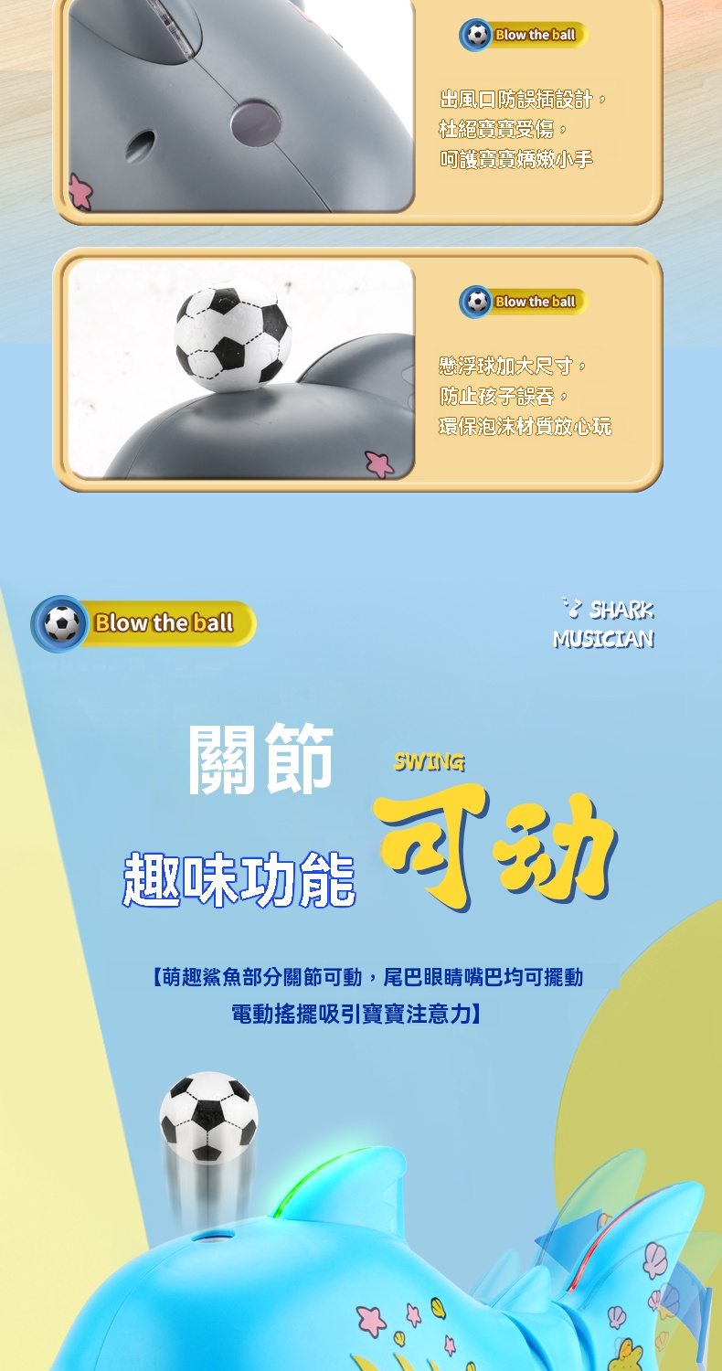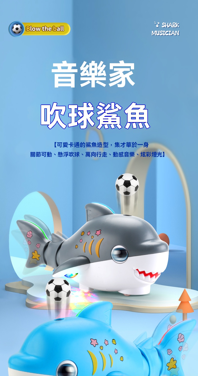 【雙球豪華版】音樂鯊魚吹球機・充電環保・送電池充電器・玩出寶寶超專注力!
