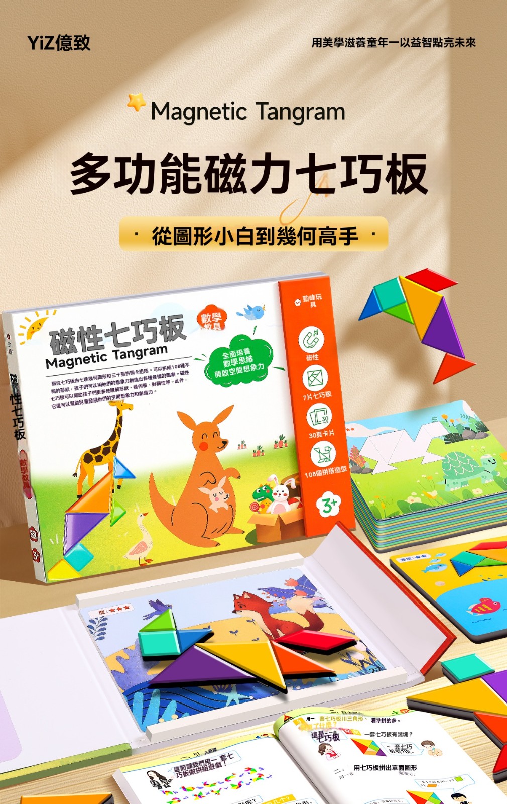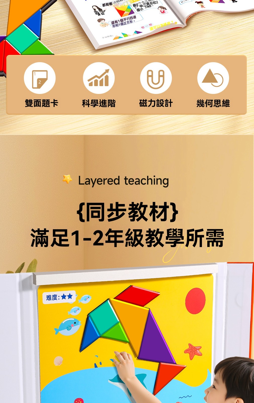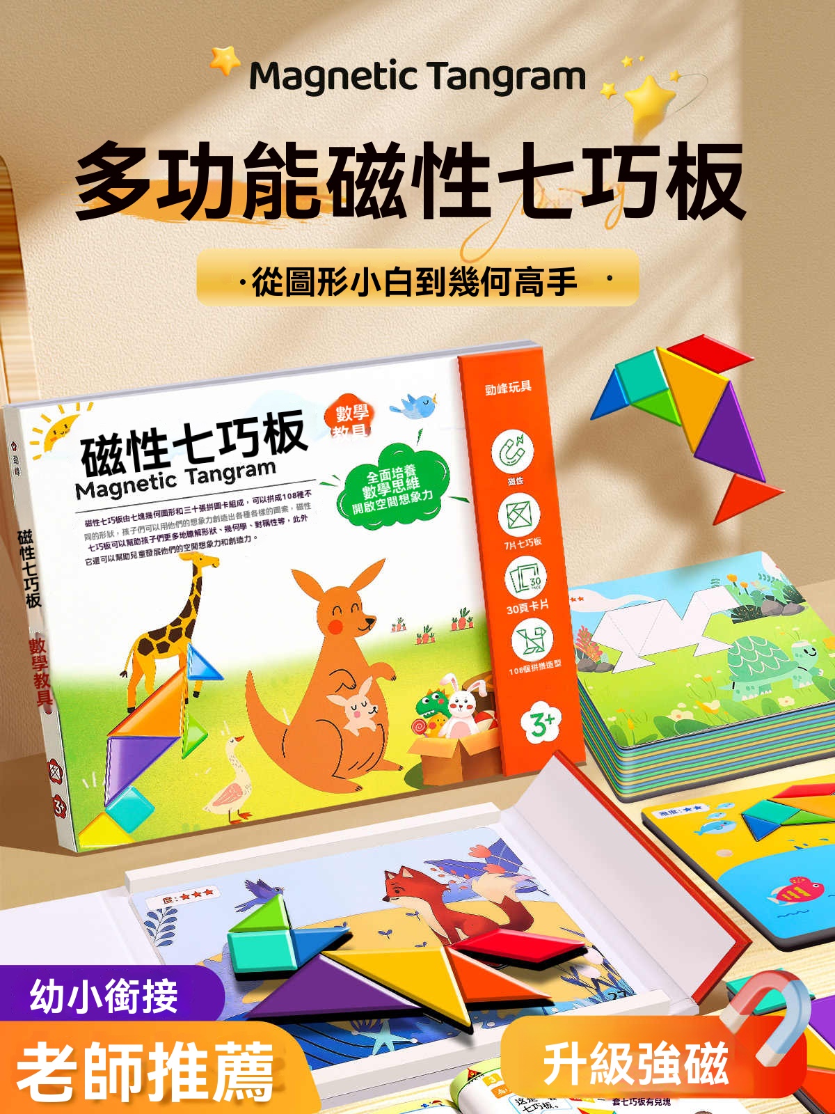 【魔法幾何七巧板】幼兒必備・磁性拼圖不散落・玩出數學腦+創造力!