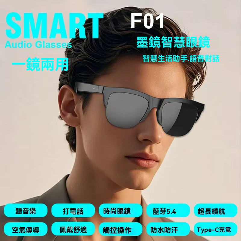 【未來感智能眼鏡】墨鏡x耳機二合一|開放式立體聲|IPX5防水|超長續航