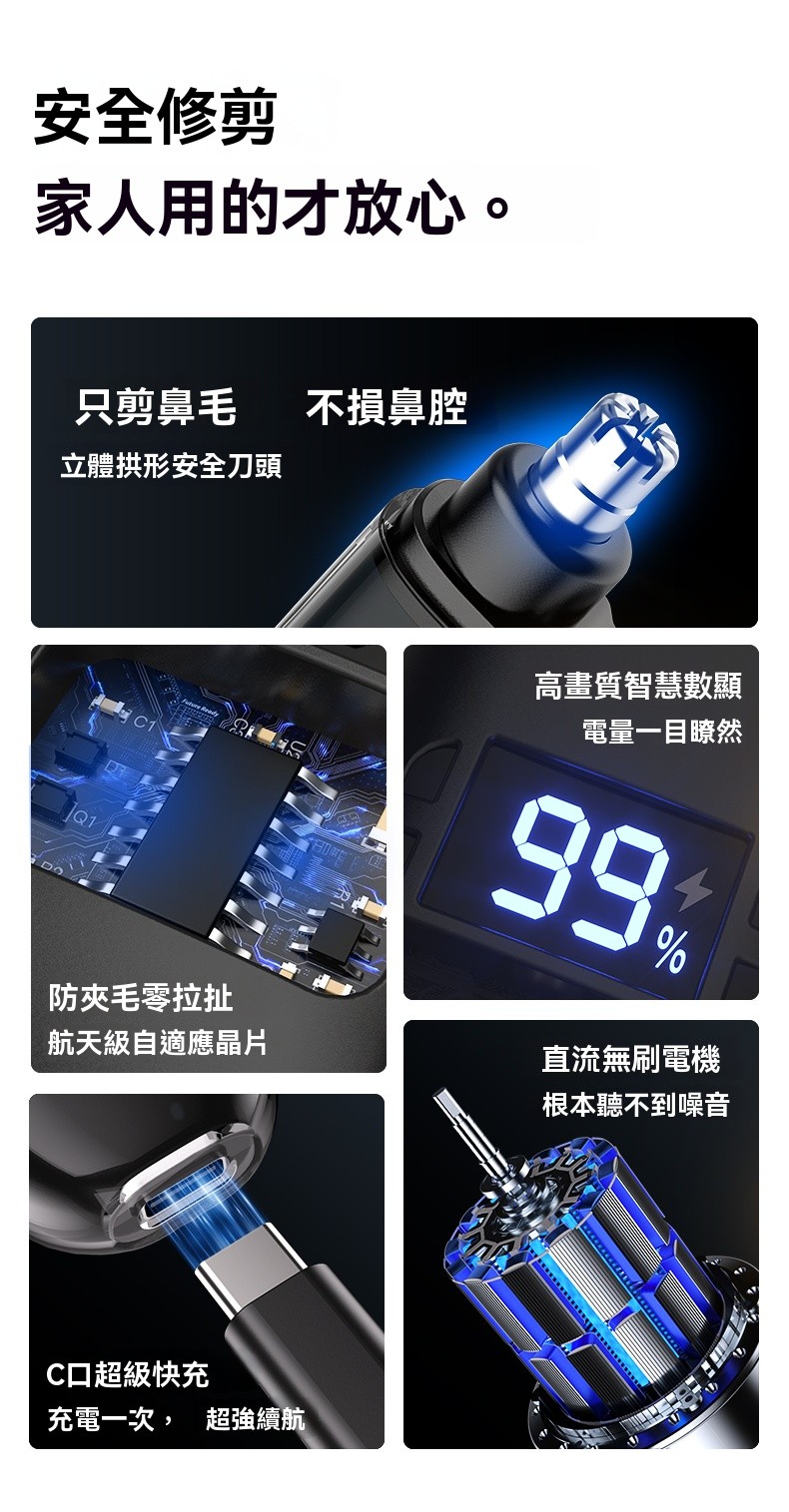 【鼻毛管理大師】強勁動力・圓潤護鼻・全身水洗・男士理容必備!